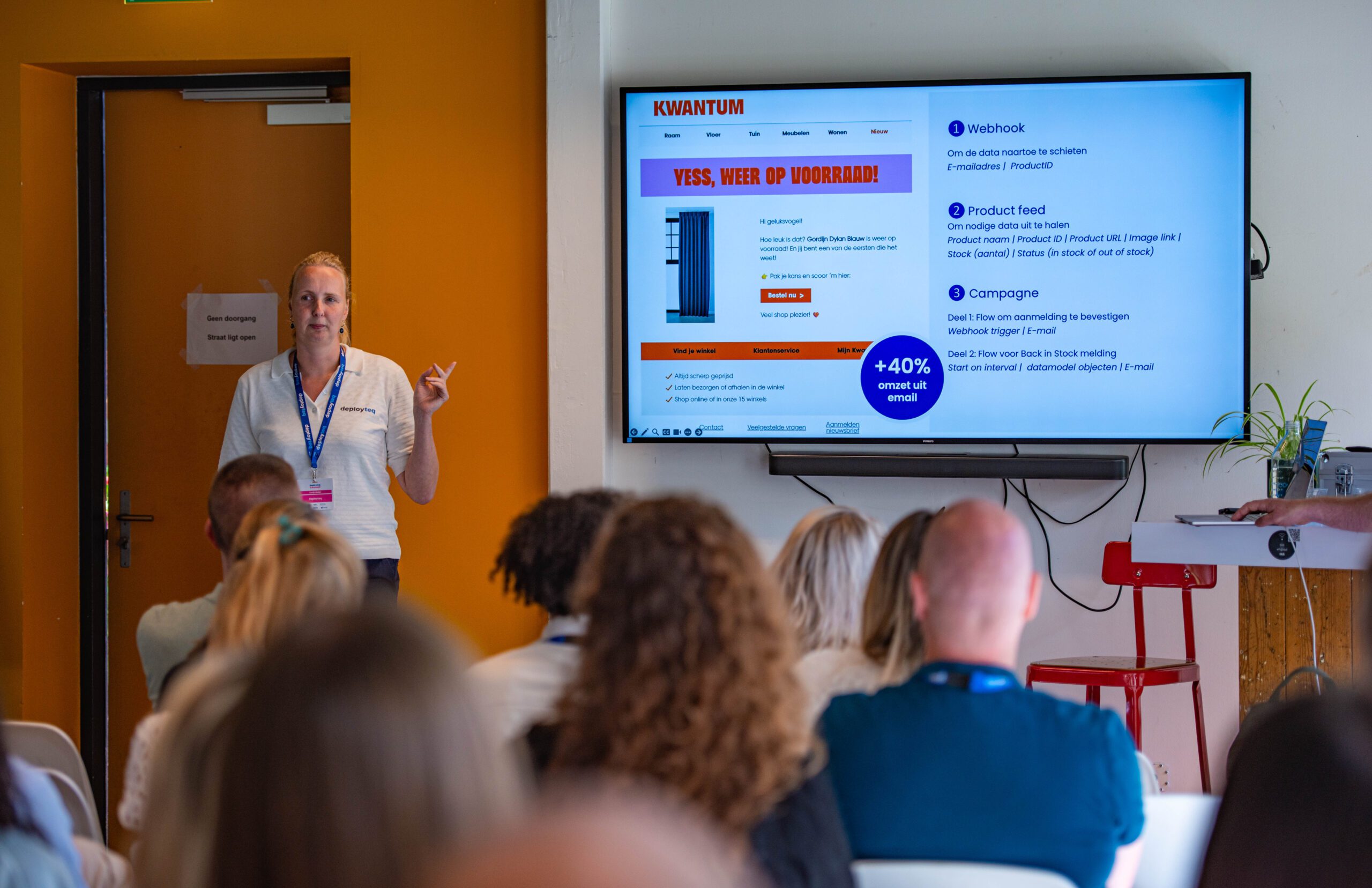 Laat je verrassen door wat er allemaal mogelijk is in Deployteq. Timon & Carijn dagen je uit om verder te denken dan ooit tevoren! Ze nemen je mee langs next-level klantcases vol slimme flows, hyperpersonalisatie en impactvolle campagnes. Allemaal in Deployteq. Je ziet wat er écht kan. Een sessie vol inspiratie, verrassende cases en concrete ideeën om morgen mee aan de slag te gaan.
