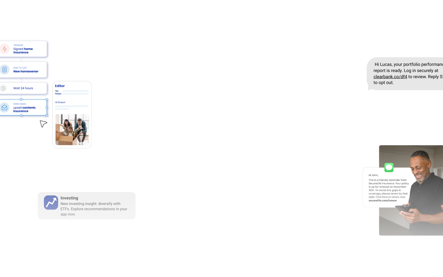 Van portefeuille-updates tot verzekeringsoffertes: stem elk bericht af op voorkeuren en gedrag, zonder gevoelige data te delen.